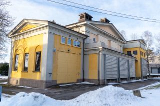 Trafostasjonen er bygget i nyklassisisme. Tegnet av arkitektene Carl & Jørgen Berner.