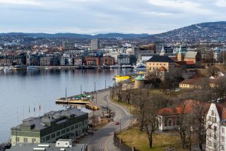 Skur 38 og Akershusstranda sett fra taket av Kornsiloen på Vippetangen.
