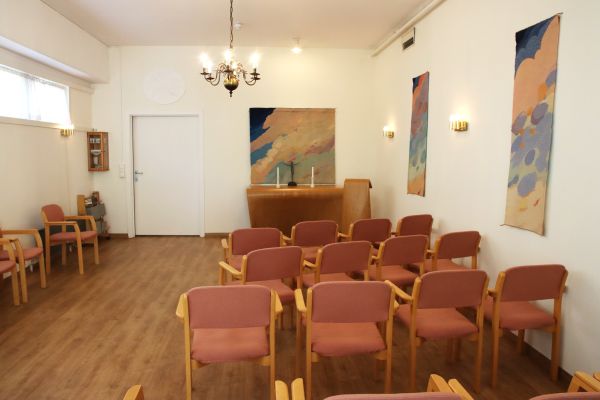 Smestadhjemmets kapell ligger i Smestadhjemmets underetasje. Det ble innredet 1991 av Kirkelig Kulturverksted og har et tydelig preg av at rommet er tenkt til gudstjenestelig bruk og ikke bare som seremonirom. I tillegg til alter og prekestol formet av Terje Hope, og krusifiks formet som seirende Kristus av Gunnar Torvund, er det et lite, men svært synlig skap i hjørnet der en kan se nattverd-utstyret i lys keramikk formet av Ole Lislerud. Egen hylle til salmebøker. Alterbildet er et vevet teppe av Rigmor Bové. Hun har også laget tre tepper til veggen til høyre i rommet.