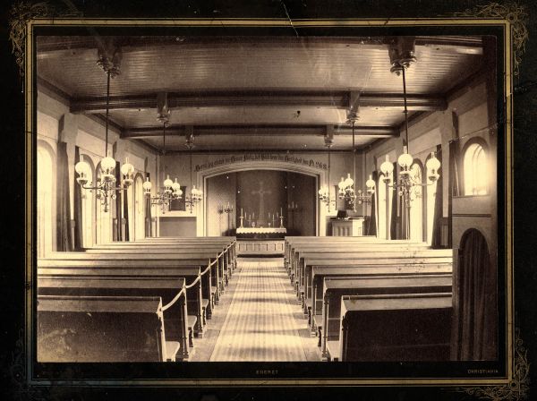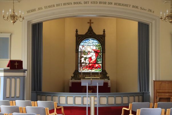 Kapellet hadde først et enkelt kors over alteret, men fikk i 1890-årene et tysk glassmaleri med motiv "Jesus som den gode hyrde" som altertavle.