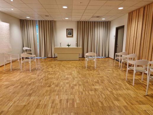 Over alteret henger det et eldre bilde som forestiller Jesu i bønn. Dette stammer fra det tidligere Hovseter sykehjem fra 1978. Også nattverd-utstyr ble tatt med fra det gamle hjemmet. Gardinene i front kan ved behov dekke hele veggen.