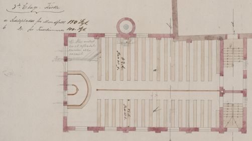 Ved kgl.res. 26. febr. 1847 ble tredjepresten ved Vår Frelsers menighet overdratt tilsynet med med byens sykehus, arbeidsanstalt og fattigstuene. Fra da av ble det regelmessige gudstjenester i Mangelsgården hver 3. søn- og helligdag i tillegg til konfirmantundervisning av de ukonfirmerte. Også tidligere var det prestetjeneste ved institusjonen, - og gudstjenester, men uten samme fastlagte ordning som fra 1847. I prestens dagsregister står det at han var tilstede ved innvielsen av Mangelsgårdens kirkerom 4. søndag i advent 1865. Dette indikerer at kirkerommet kunne benyttes minst et år før bygget ellers med vaskeri og kjøkken kunne tas i bruk.