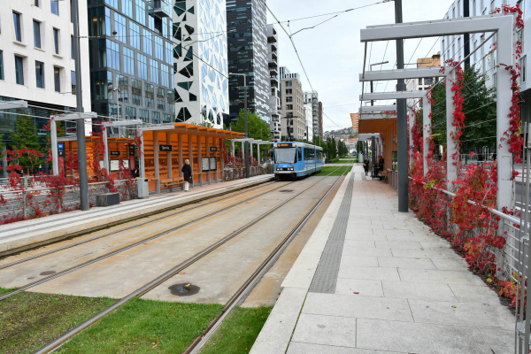 11. Diagonale, to bygg oppført 2018. Det ene inneholder kontorer bl.a. for TV2, det andre inneholder 308 studentboliger (ark. Lund Hagem Arkitekter og Atelier Oslo). Mellom de to bygningene går den lille gaten Henny Mürers gang.