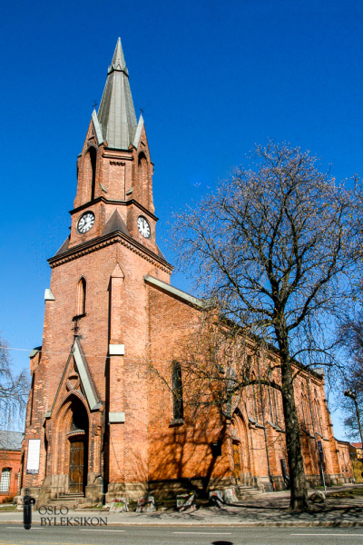Jakob kirke ble innviet 8. oktober 1880 av biskop Carl Peter Parelius Essendrop. Den var oppført på Ankerløkken Kirkegaard av oransjefarget murstein i nygotisk stil med slanke søyler og spissbuer som gir den et høyreist og monumentalt preg. Arkitekt var stadskonduktør G. A. Bull. Den hadde da 820 sitteplasser.