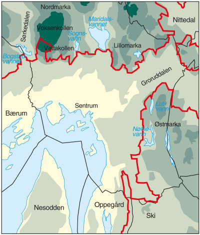 Markagrensen, avgrensning av Oslomarka mot byggesonen i omkringliggende kommuner.