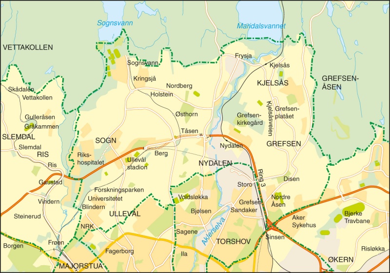 Utbyggingen frem til annen verdenskrig besto i overveiende grad av småhus. Etter krigen er det også kommet en del blokkbebyggelse i avgrensede områder, bl.a. på Nordre Åsen og på Myrer ved Kjelsås øst for Akerselva og på Nygård terrasse, Ullevålsletta og Kringsjå i vest. Fra 1990-årene er det skjedd en betydelig boligbygging i Nydalen som en del av byutviklingen her. I denne sammenhengen ble T-banelinjen mellom Carl Berners plass og Ullevål Stadion anlagt som ledd i T-baneringen. Den ble fullført i to etapper, 2003 og 2006.