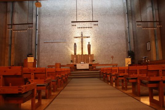 Inventar fra Sinsen kapell: Per Vigelands altertavle, alteret og døpefonten i tre, samt noen tekstiler er plassert i et sidekapell/dåpssakristi.