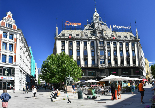 Der Grands tilbygg ligger, var det mange år et treetasjes bolighus. I første etasje hadde baker J. B. Bordoe utsalg og konditori. Frits Thaulows maleri «Stortings plads» fra 1881 gir et godt inntrykk av hvordan det så ut her på den tiden. Senere ble denne gården kalt Brambanigården etter kjøpmann Carl Brambani. Den ble påbygd i 1914, men ble nektet bygd i samme stil som Grand! Dagens nr. 27 er en forretningsgård fra 1975 tegnet av arkitektfirmaet Torp & Torp A/S. Taketasjene er en del av hotellet, resten forretninger og kontorer. Den er et fint eksempel på hvordan et nytt bygg kan tilpasses et eldre bygningsmiljø.