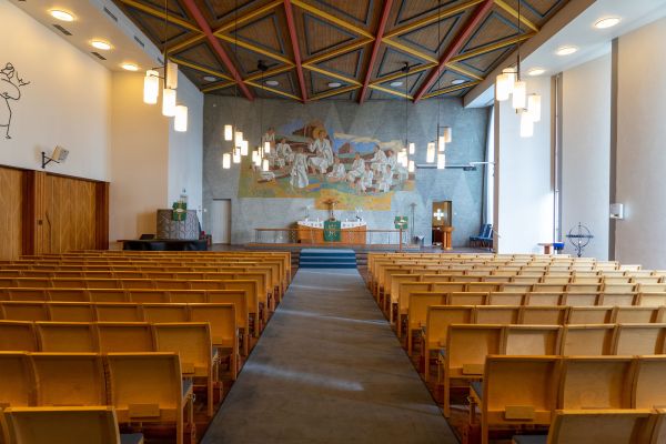 Kirken har også to menighetssaler, kontorer og aktivitetsrom.